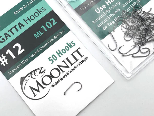 ML102 TOGATTA Barbless Hooks from Moonlit.  A premium barbless dry fly hook with down eye and standard wire. Enjoy the Highest Quality Tempering out of one of the leading Hook Manufacturing Plants in Japan.  This adds superior strength, durability, and sharpness.