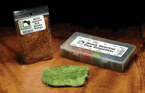 Quick Descent Dubbing from Hareline is aluminum metal dubbing that dubs like Superfine and sinks like a rock. You can dub down to a size 26 avoiding the bulkiness associated with lead wire or zonker tape. Hareline’s Quick Descent Dubbing is a dubbing designed to increase the weight of your fresh and saltwater patterns and it’s made of very fine aluminum strands. Super easy to work with, this dubbing applies nicely to your thread and comes in a variety of flashy colors.