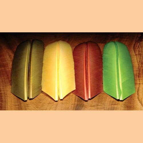 Turkey Biot Quills are the primary feathers used for flight. The leading edge of the feather has short stout fibers known as Biots. The other side has longer and thinner fibers, these are the “lift” section of the feather. Both sides are useable for quill bodies on dries and nymphs. Biots are much more durable, wider, and will have a distinctive ridge for segmentation. Turkey Biots are longer than goose biots and have a distinctive darker colored edge that accents the segmentation effect when wrapped as fly body material. Turkey Biot Quills make great tails and antennae for stoneflies, like the Kaufmann Stoneflies.